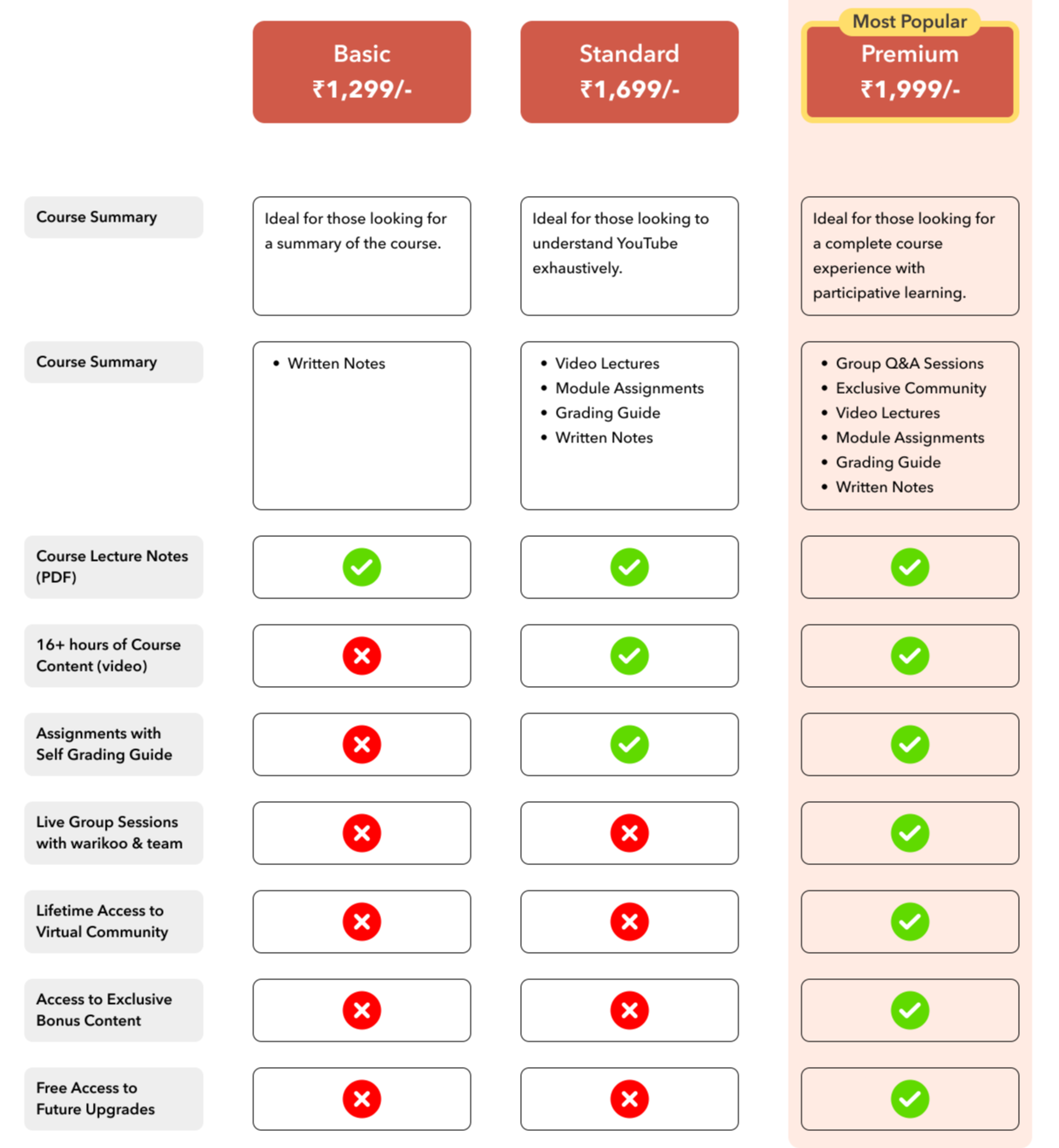 Six Monthly Live Q&A sessions by warikoo and team to resolve your queries. Lifetime access to the recordings of the same.